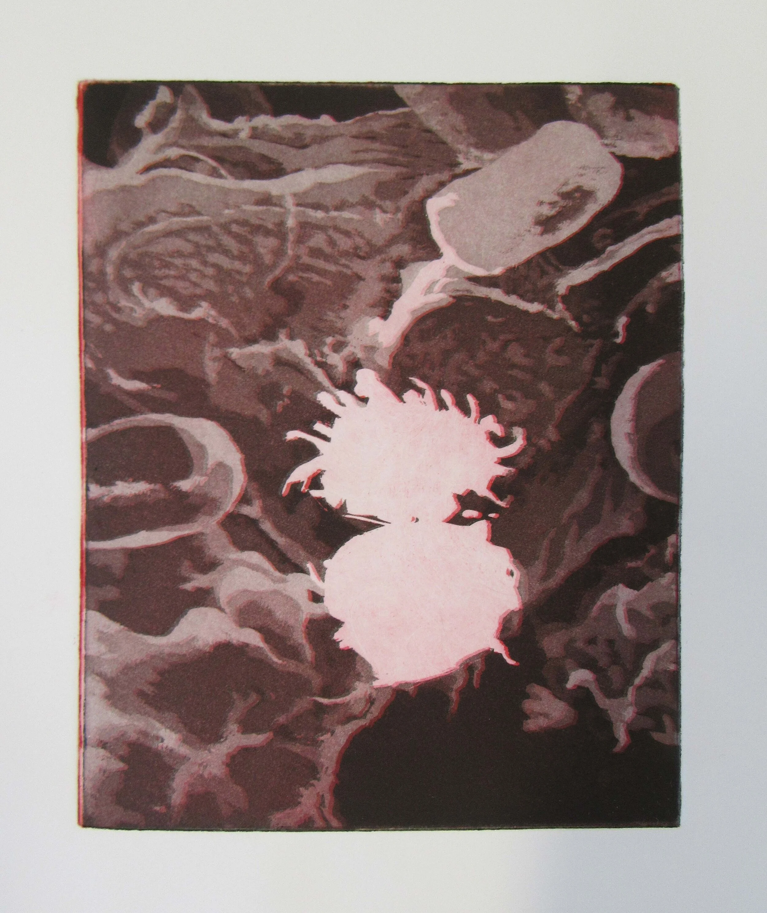 I work in any and every printmaking method, from screen to litho, relief to intaglio and everything in between. I have a special interest in the lesser known methods such as mezzotint and pressure printing (recently developing my own kind of monotype screen printing method which has been interesting!) I also produce work on a variety of subjects, all inspired by nature. I'm probably best known for my microscopic prints, as I did a three-year project on it during and just after university, so a lot of the work I've sold recently has been the run-off from that.